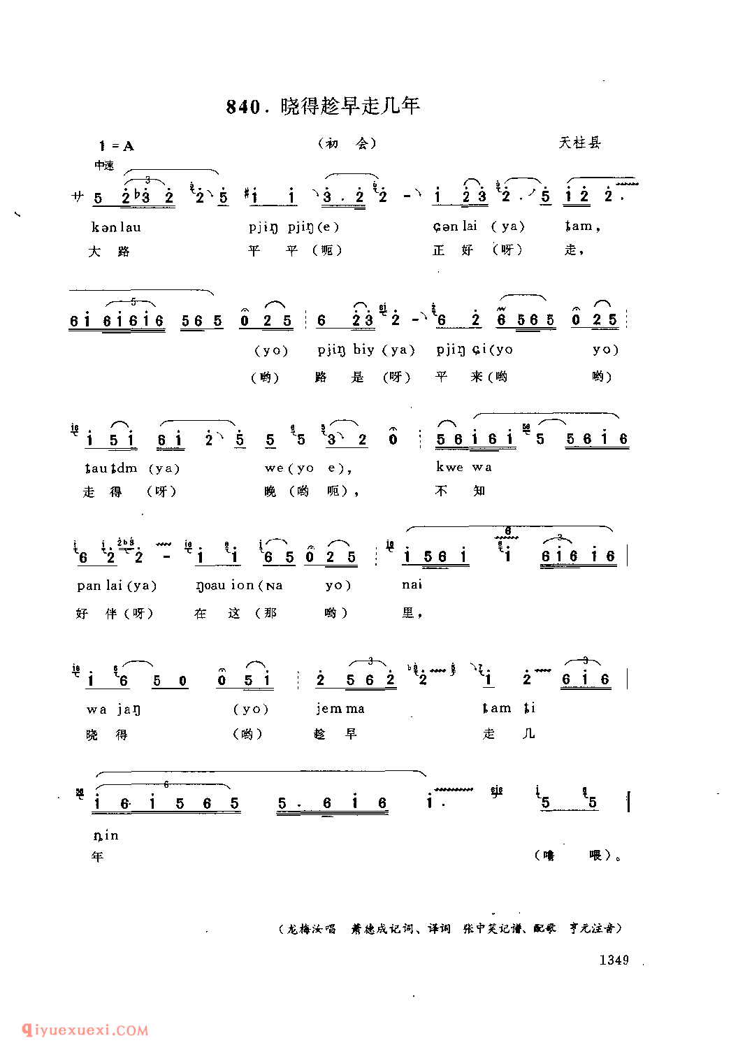 晓得趁早走几年(初会) 锦屏县·腊洞村_阿外炎(玩山歌)_贵州民间歌曲简谱