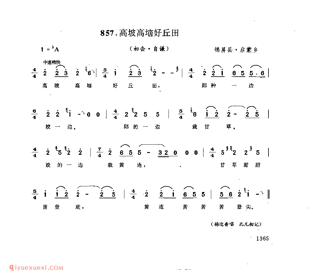 高坡高垴好丘田(初会·自谦) 锦屏县·启蒙乡_阿外炎(玩山歌)_贵州民间歌曲简谱高清简谱歌词是器乐学习网于2022年08月15日 16:07:19更新分享的民歌曲谱;资源收录于民歌曲谱栏目中;器乐学习网免费分享高坡高垴好丘田(初会·自谦) 锦屏县·启蒙乡_阿外炎(玩山歌)_贵州民间歌曲简谱简谱与五线谱歌谱图片,欢迎在线免费下载;器乐学习网无需注册会员,直接免费下载各类乐器学习资源及乐谱。
