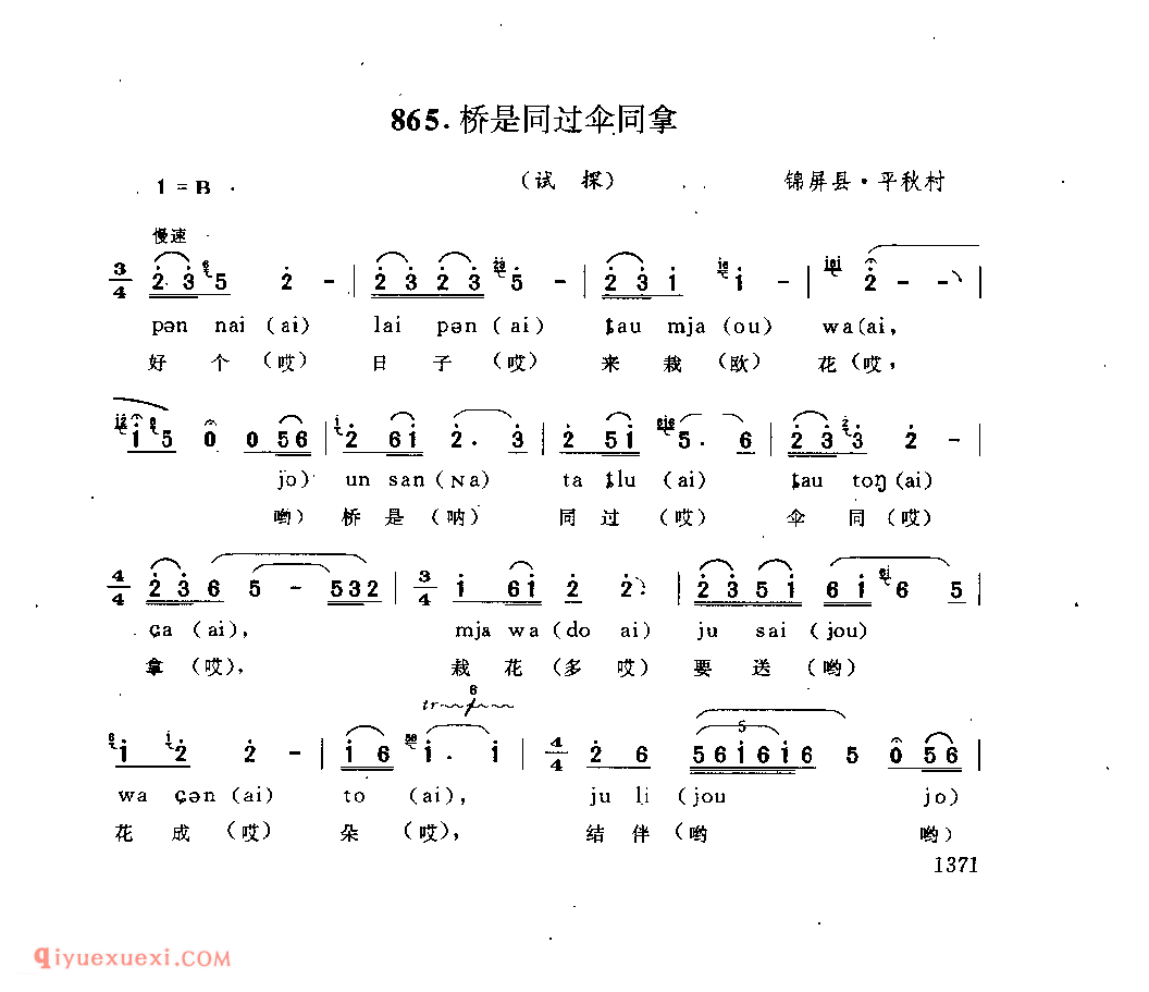 桥是同过伞同拿(试探) 锦屏县·平秋村_阿外炎(玩山歌)_贵州民间歌曲简谱