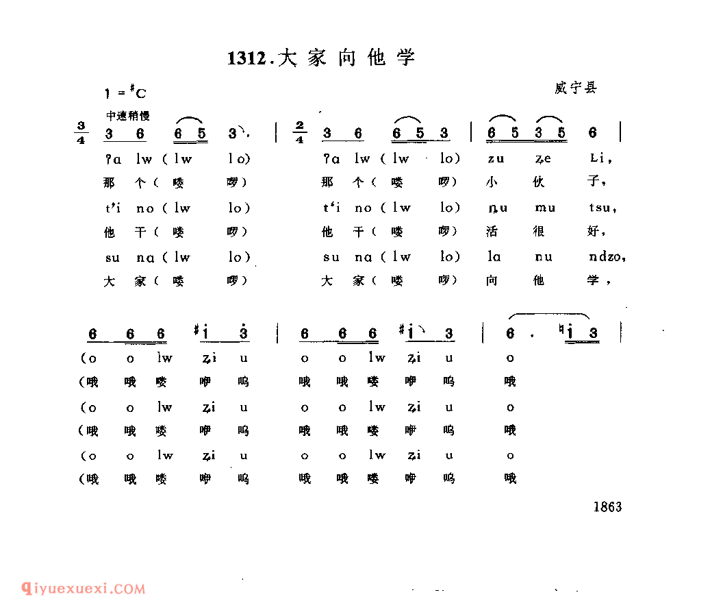 大家向他学 威宁县_阿硕_贵州民间歌曲简谱