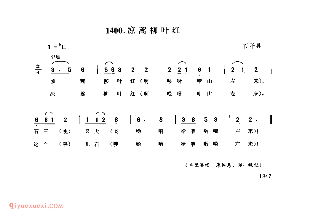 凉篙柳叶红 石阡县_劳动山歌_贵州民间歌曲简谱