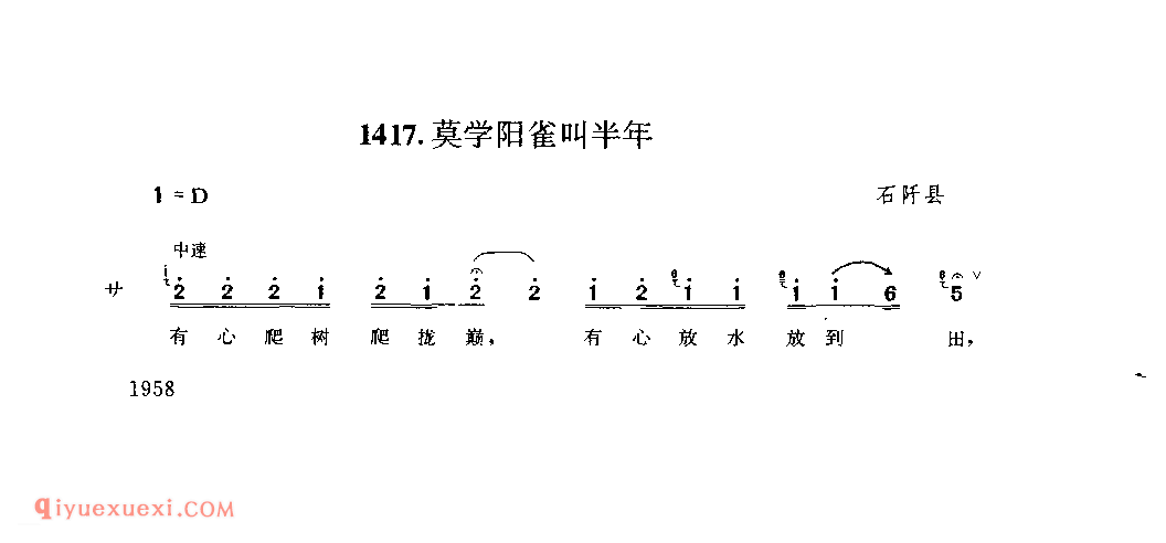 莫学阳雀叫半年 石阡县_勾朵以_贵州民间歌曲简谱