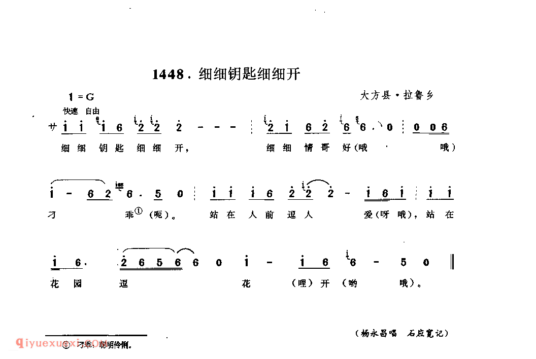 细细钥匙细细开 大方县·拉鲁乡_达以_贵州民间歌曲简谱