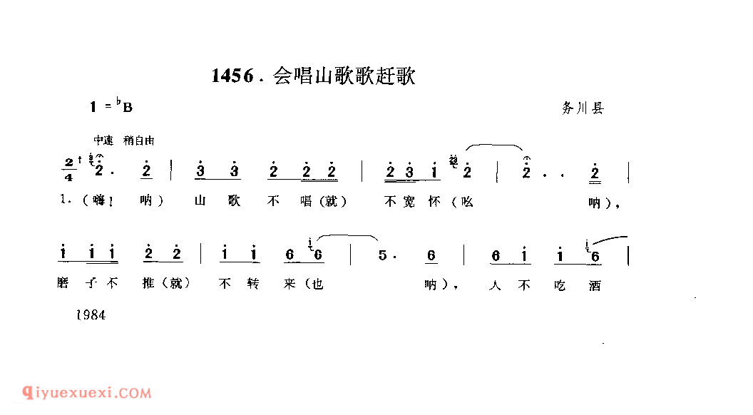 会唱山歌歌赶歌 务川县_达以_贵州民间歌曲简谱高清简谱歌词是器乐学习网于2022年08月22日 16:36:42更新分享的民歌曲谱;资源收录于民歌曲谱栏目中;器乐学习网免费分享会唱山歌歌赶歌 务川县_达以_贵州民间歌曲简谱简谱与五线谱歌谱图片,欢迎在线免费下载;器乐学习网无需注册会员,直接免费下载各类乐器学习资源及乐谱。
