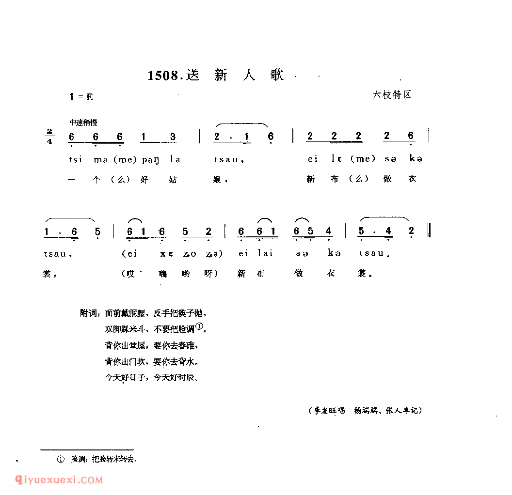 送新人歌_婚俗酒歌_贵州民间歌曲简谱