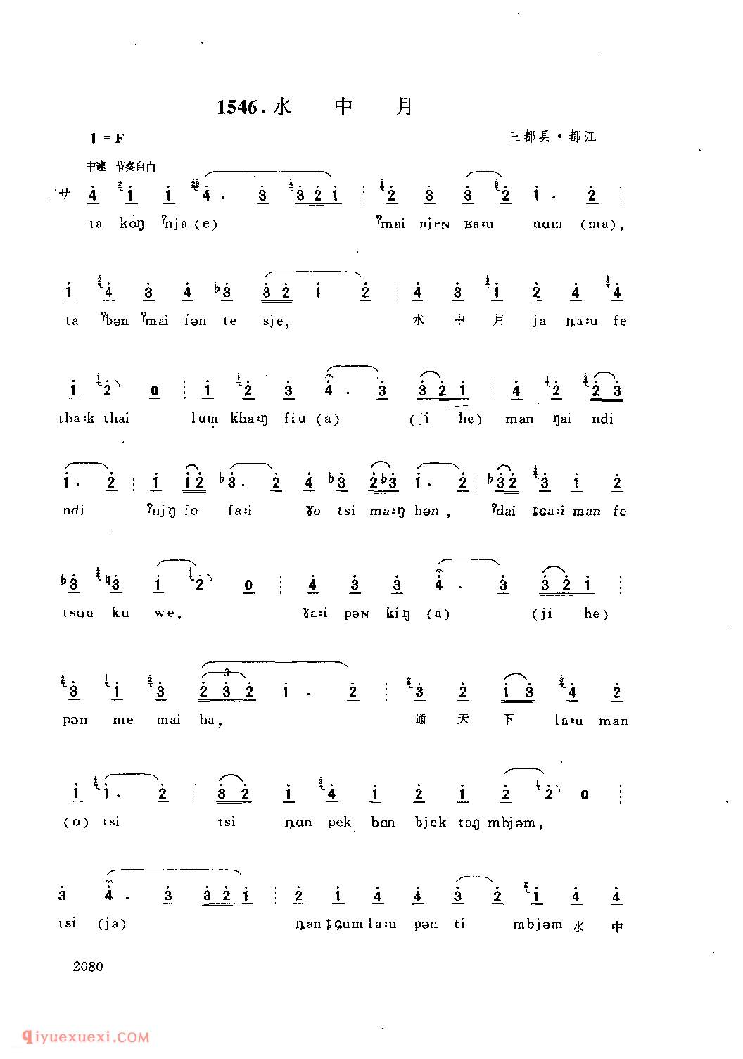 水中月(相遇歌) 三都县·都江_旭基_贵州民间歌曲简谱