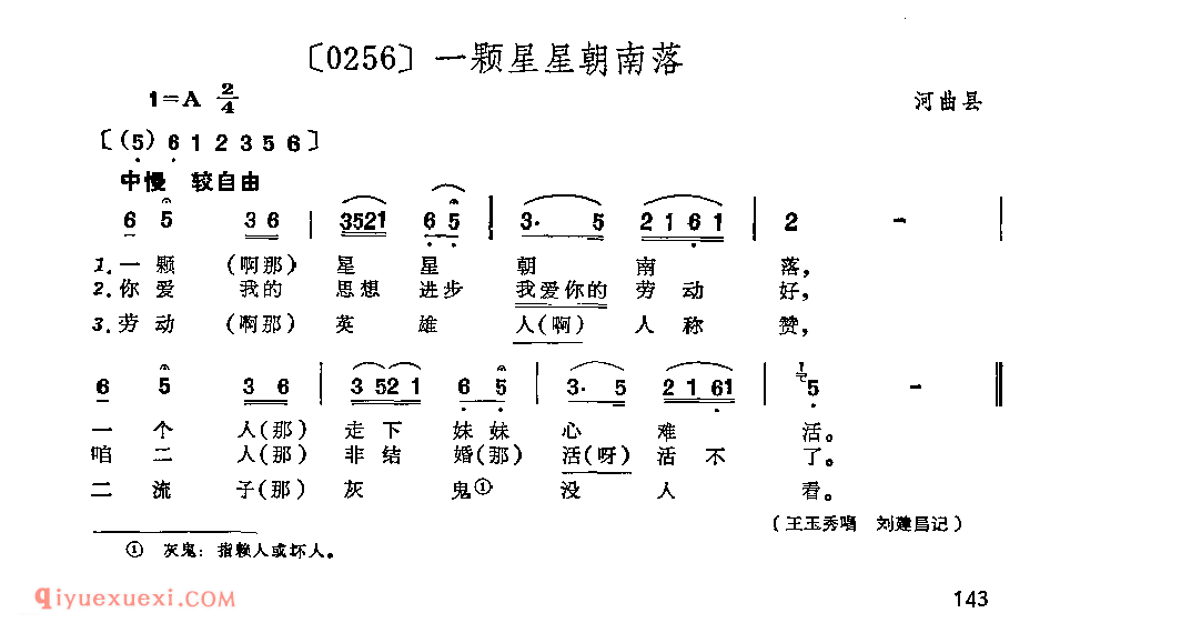 一颗星星朝南落&河曲县_山曲_山西民间歌曲简谱