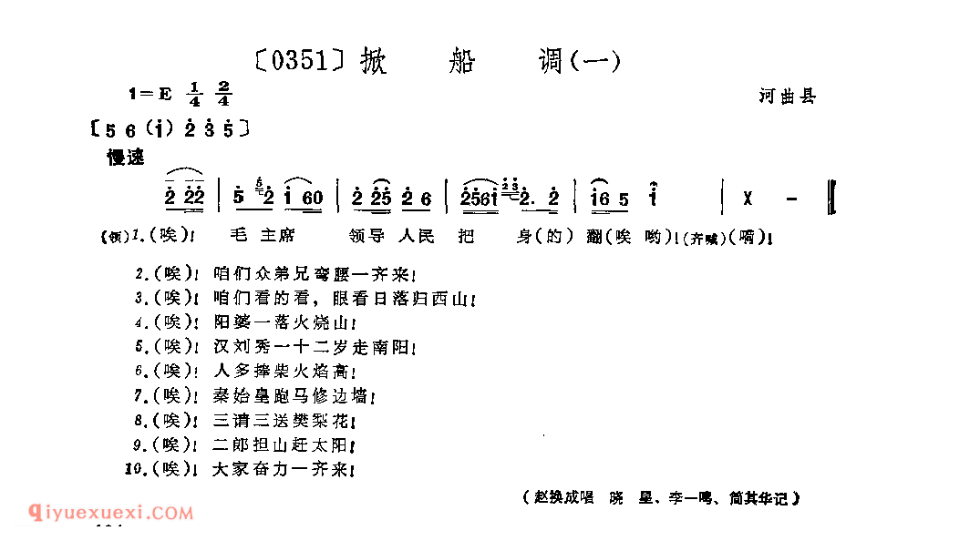 掀船调(一)&河曲县_船工号子_山西民间歌曲简谱