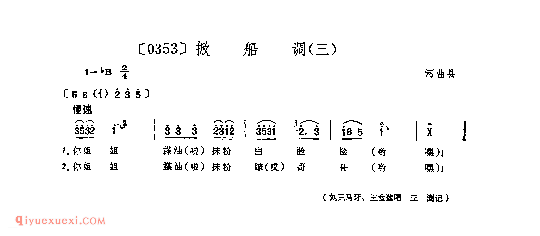 掀船调(三)&河曲县_船工号子_山西民间歌曲简谱