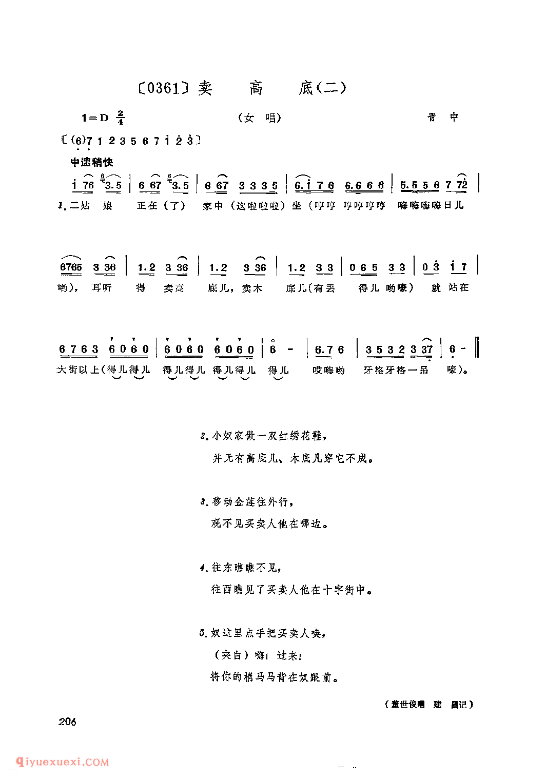 卖高底(二)&晋中_秧歌_山西民间歌曲简谱