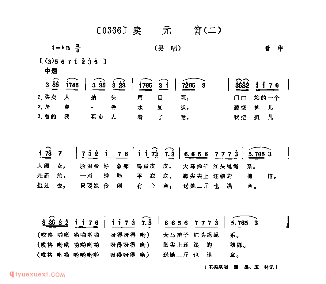 卖元宵(二)&晋中_秧歌_山西民间歌曲简谱