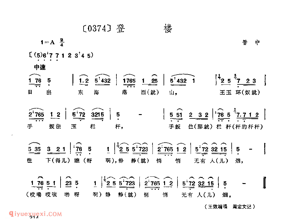 登楼&晋中_秧歌_山西民间歌曲简谱