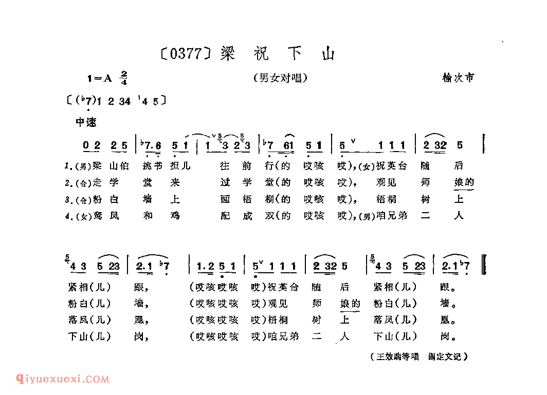 粱祝下山&榆次市_秧歌_山西民间歌曲简谱