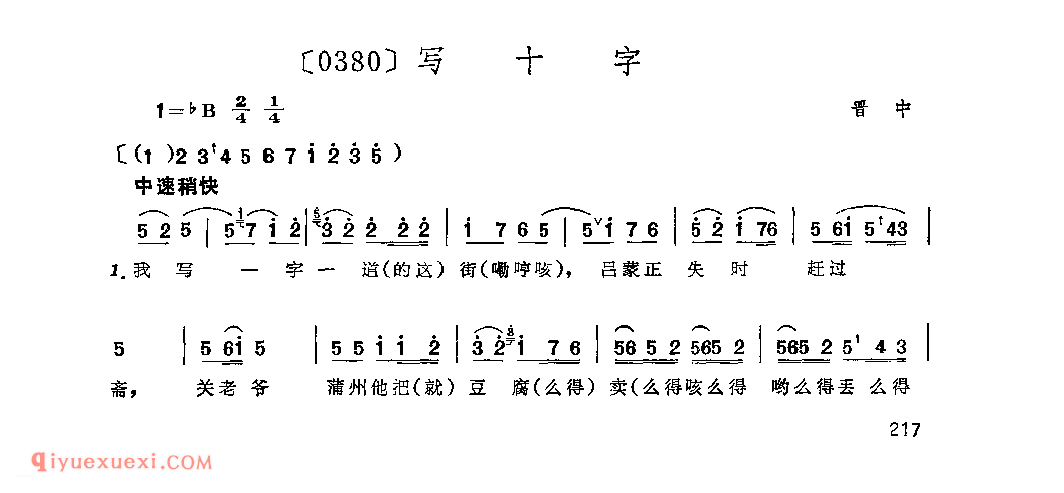 写十字&晋中_秧歌_山西民间歌曲简谱