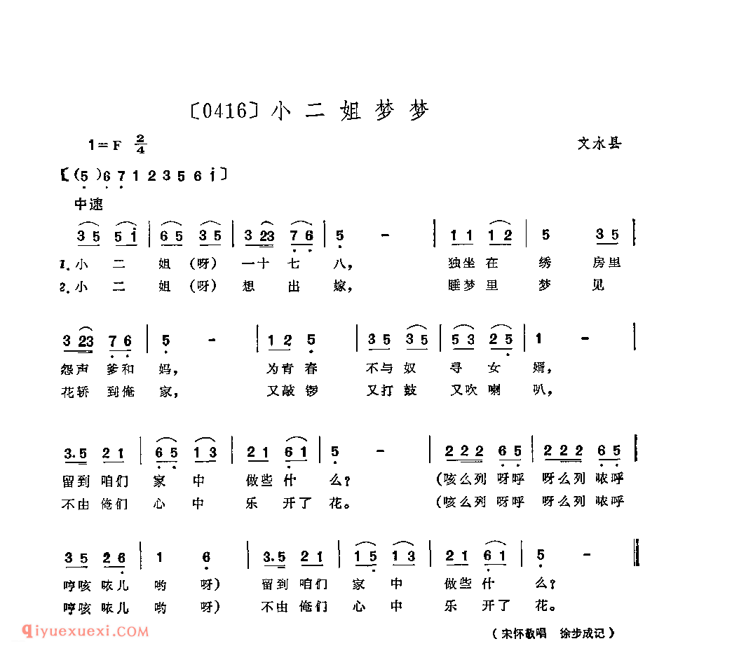 小二姐梦梦&文水县_秧歌_山西民间歌曲简谱