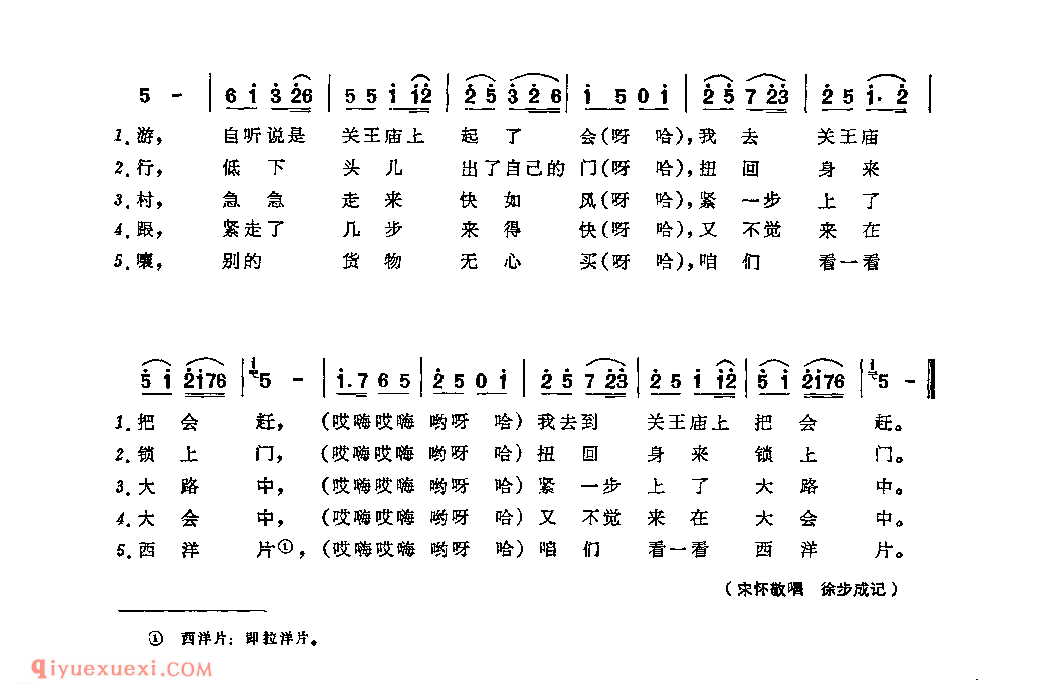 逛会&文水县_秧歌_山西民间歌曲简谱
