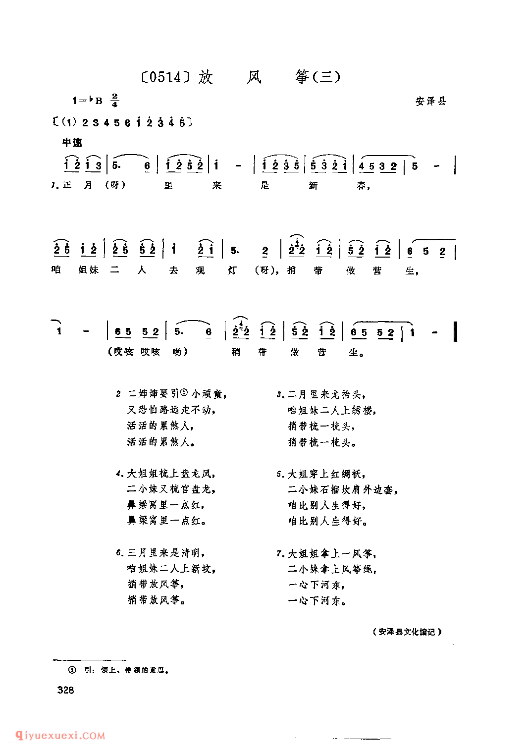 放风筝(三)&安泽县_秧歌_山西民间歌曲简谱