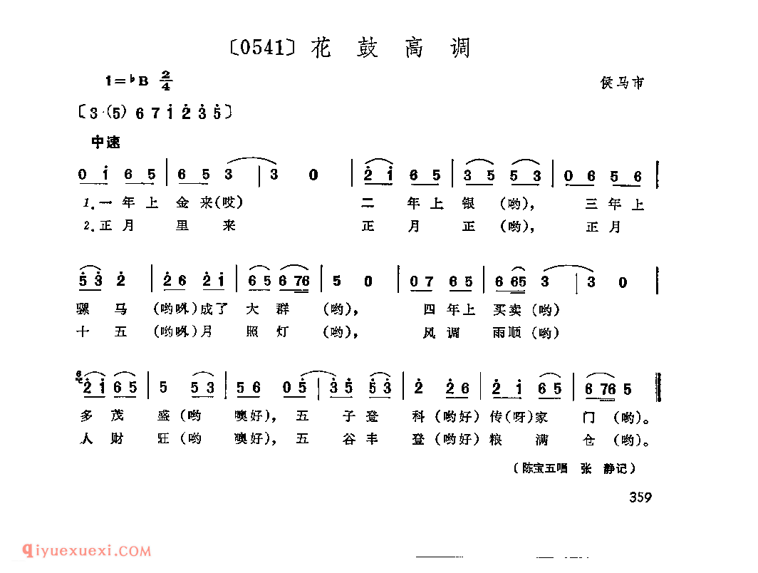 花鼓高调&侯马市_秧歌_山西民间歌曲简谱