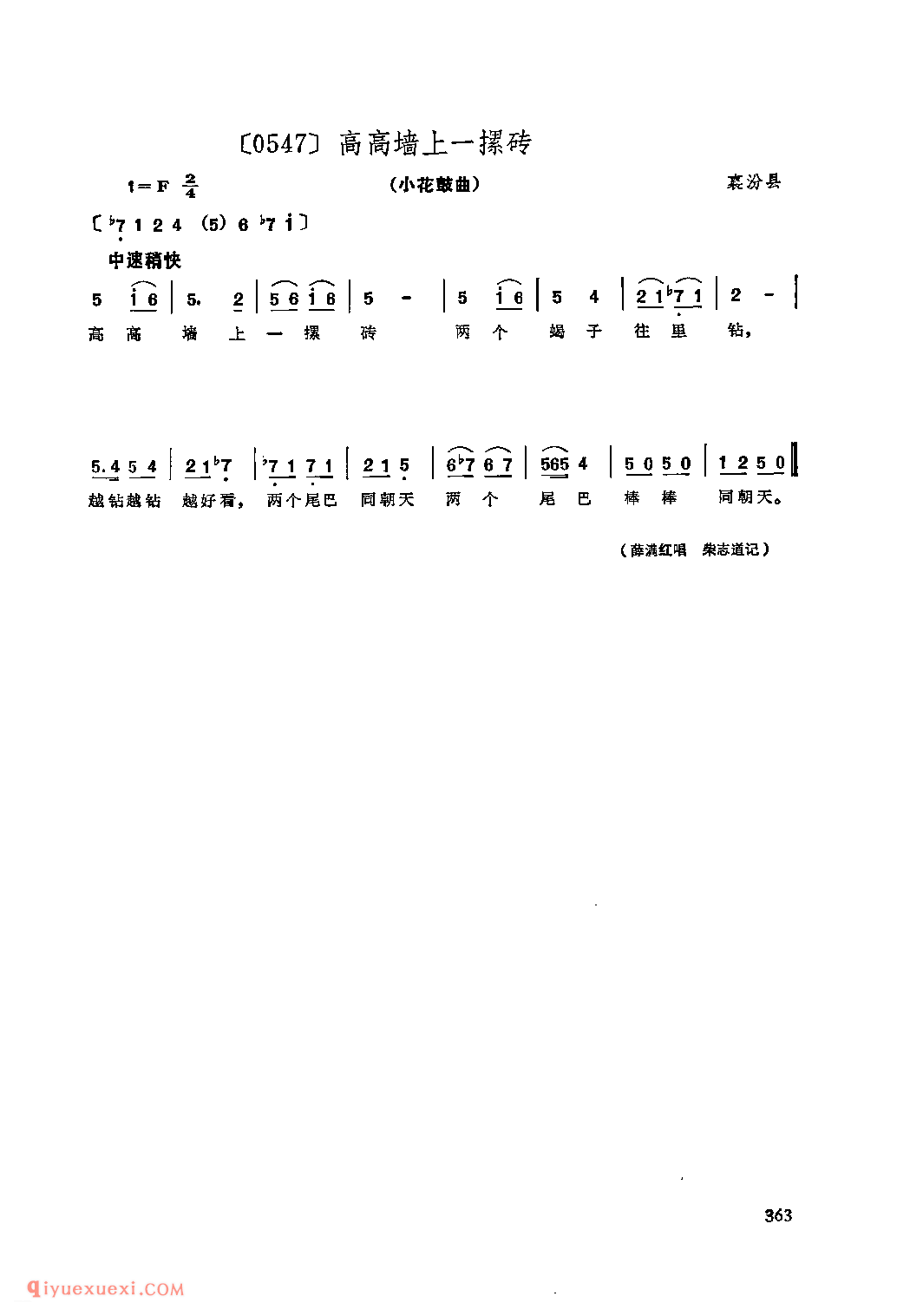 高高墙上一摞砖&襄汾县_秧歌_山西民间歌曲简谱