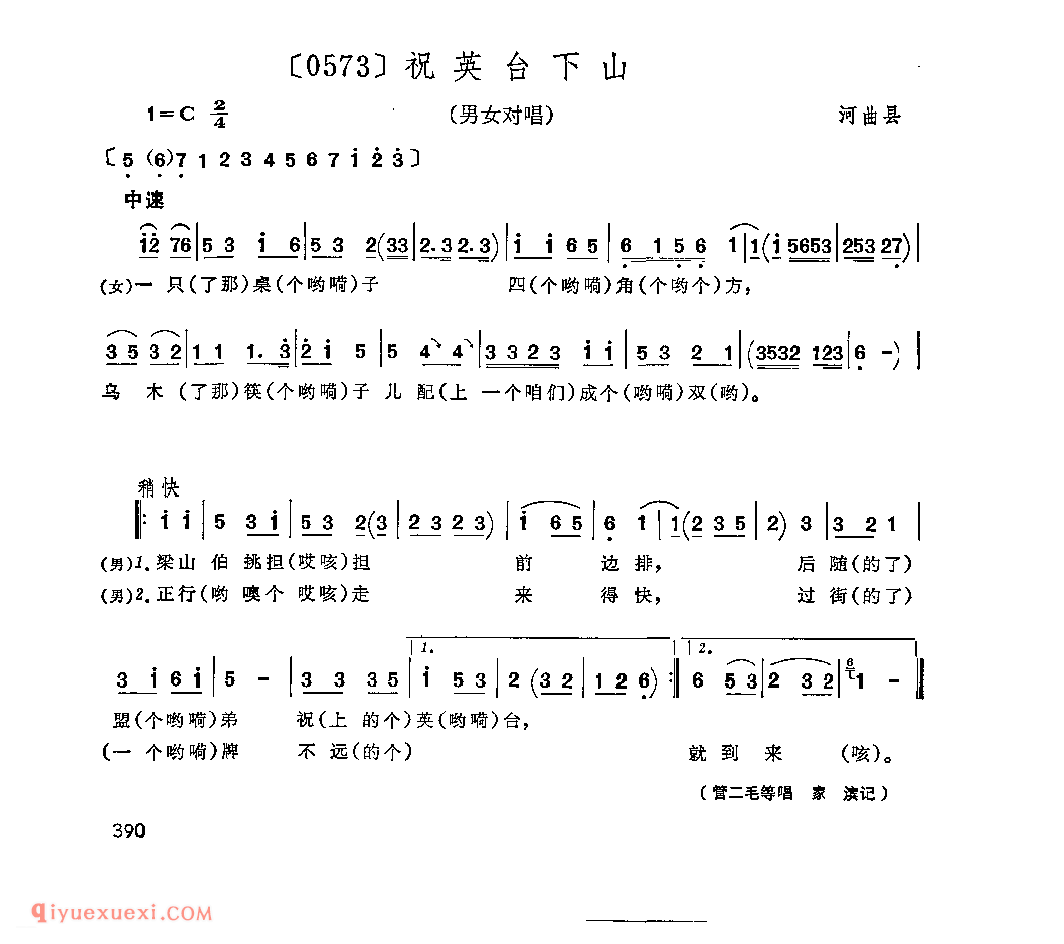 祝英台下山&河曲县_秧歌_山西民间歌曲简谱