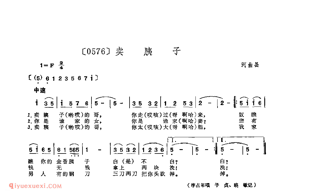 卖胰子&河曲县_秧歌_山西民间歌曲简谱