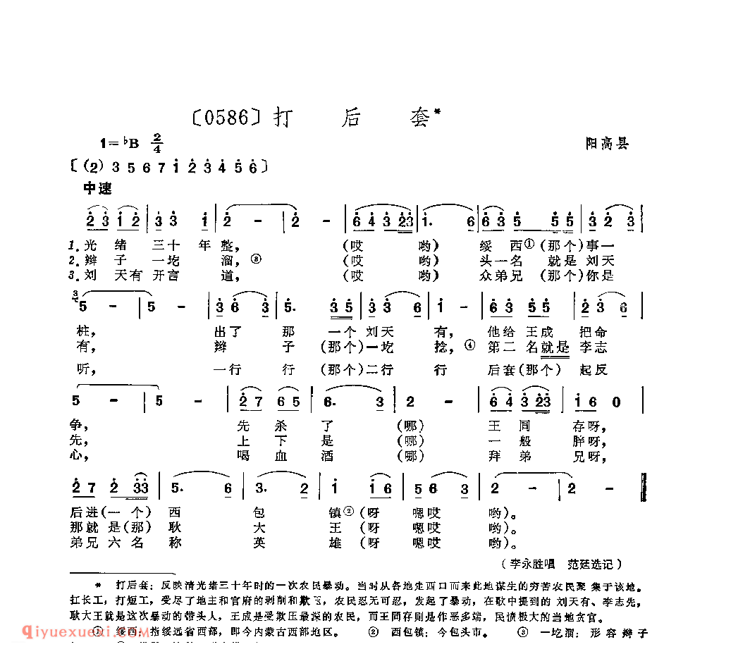 打后套&阳高县_秧歌_山西民间歌曲简谱高清简谱歌词是器乐学习网于2022年09月06日 09:59:27更新分享的外国歌谱;资源收录于外国歌谱栏目中;器乐学习网免费分享打后套&阳高县_秧歌_山西民间歌曲简谱简谱与五线谱歌谱图片,欢迎在线免费下载;器乐学习网无需注册会员,直接免费下载各类乐器学习资源及乐谱。
