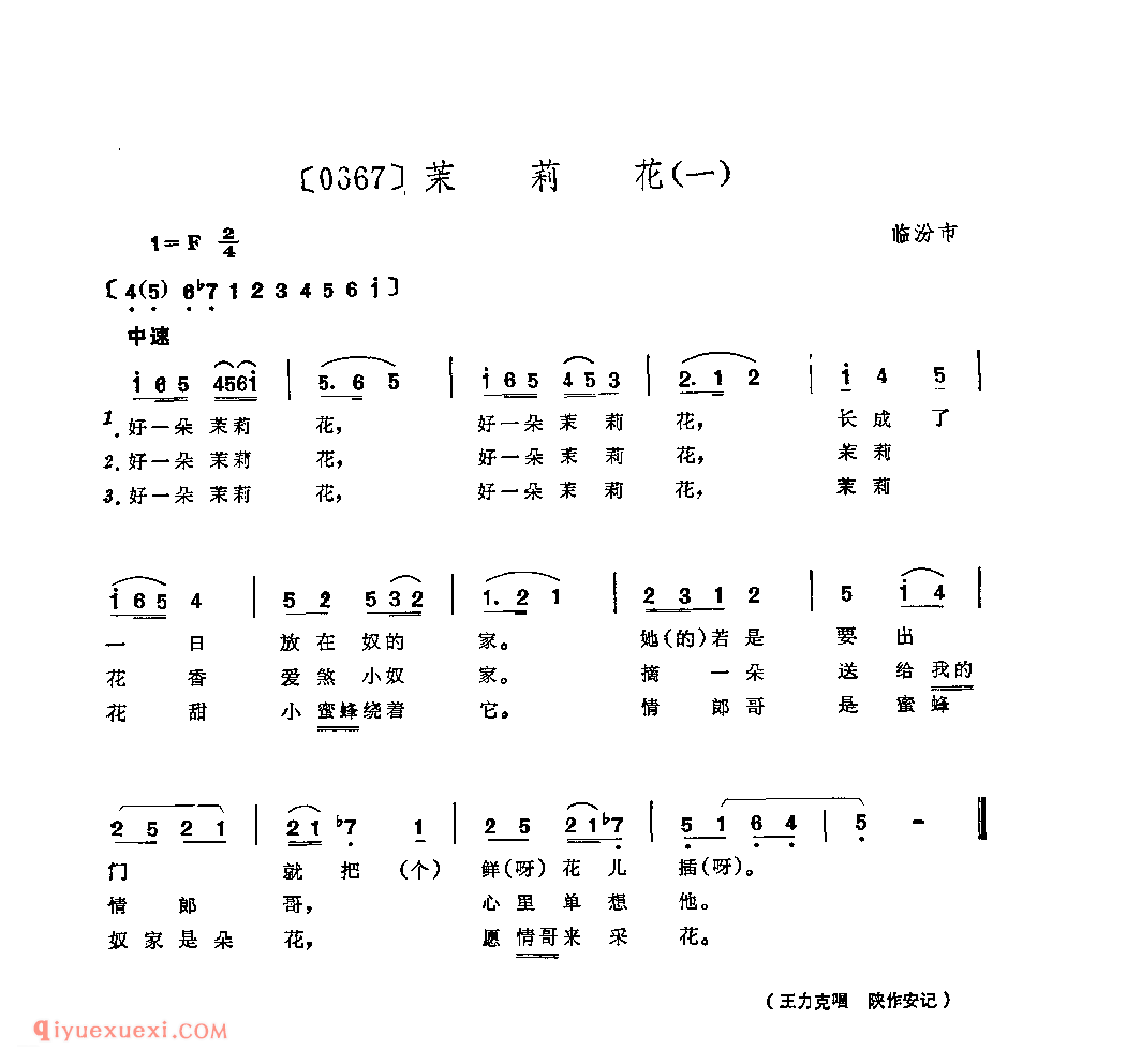茉莉花(二)&闻喜县_小调类_山西民间歌曲简谱