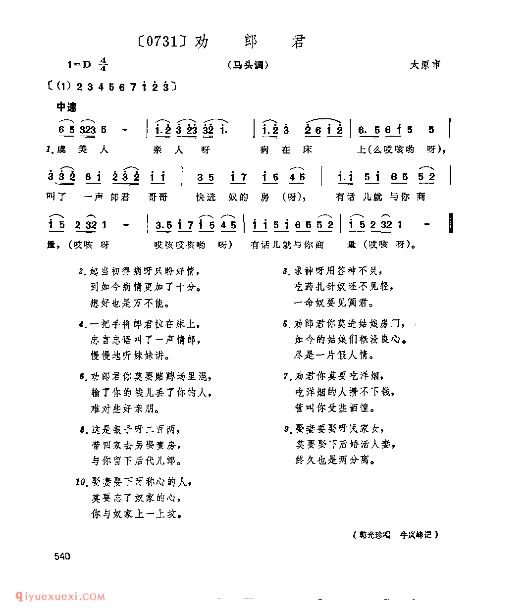 劝郎君&太原市_小调类_山西民间歌曲简谱高清简谱歌词是器乐学习网于2022年09月14日 11:04:15更新分享的民歌曲谱;资源收录于民歌曲谱栏目中;器乐学习网免费分享劝郎君&太原市_小调类_山西民间歌曲简谱简谱与五线谱歌谱图片,欢迎在线免费下载;器乐学习网无需注册会员,直接免费下载各类乐器学习资源及乐谱。
