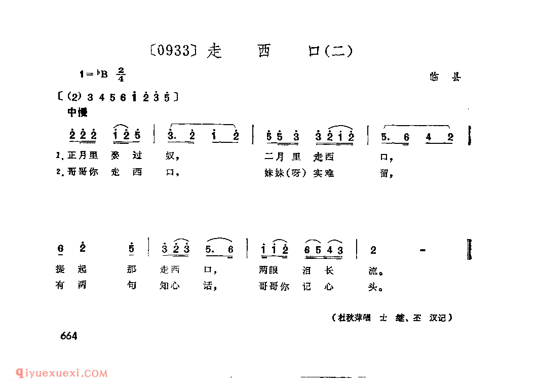 走西口(二)&临县_小调类_山西民间歌曲简谱