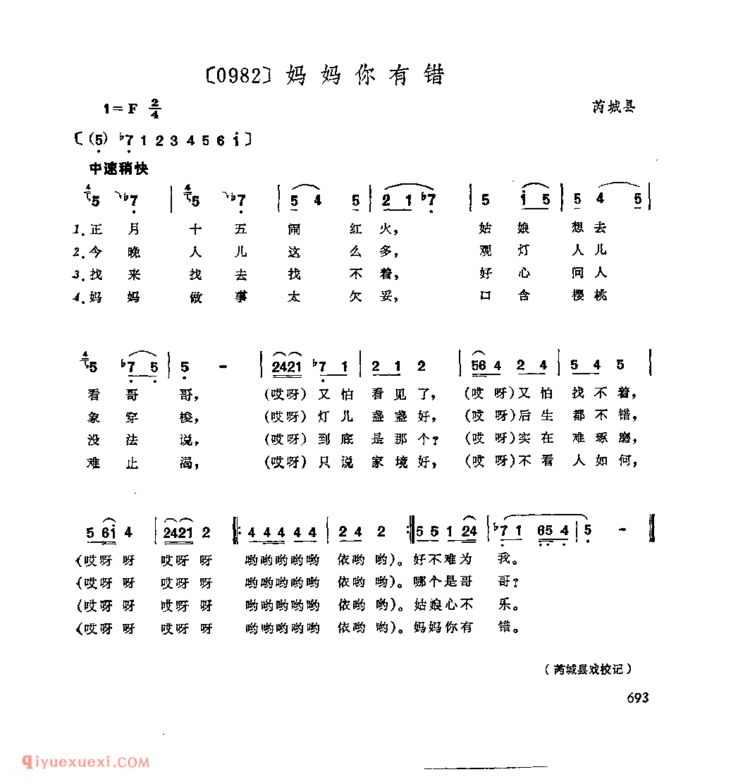 妈妈你有错&芮城县_小调类_山西民间歌曲简谱