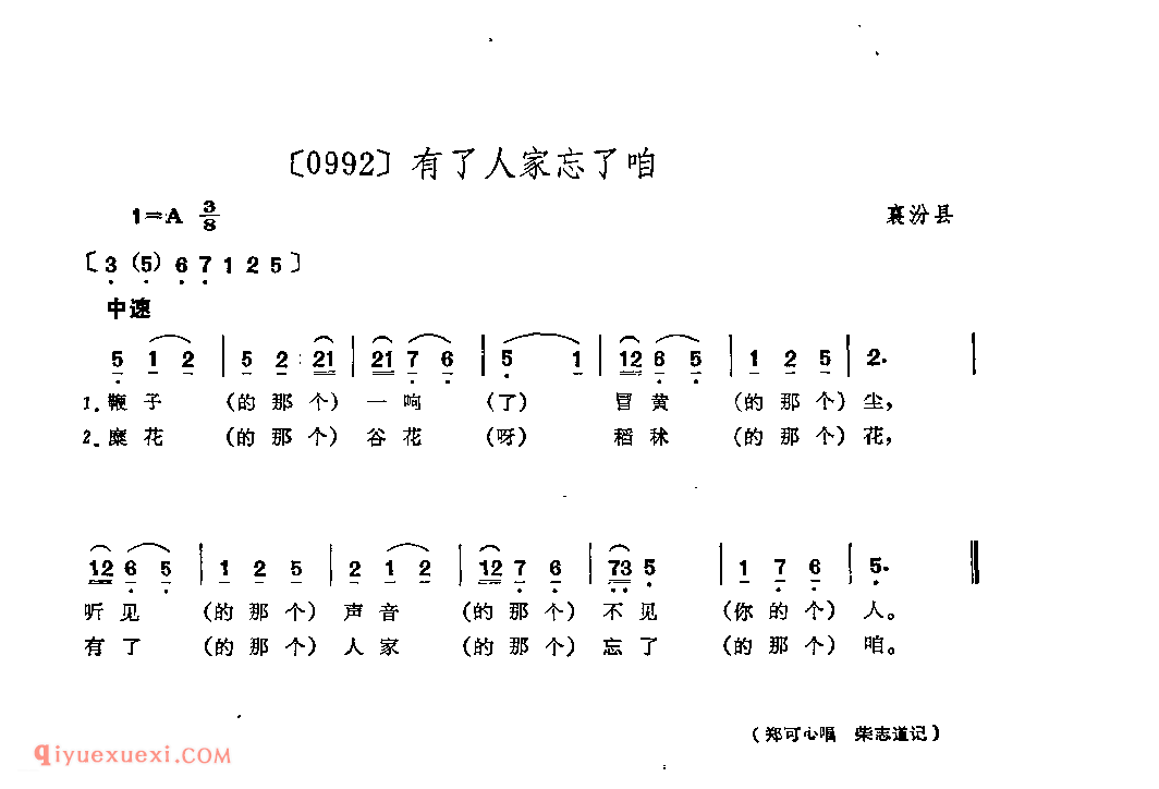 有了人家忘丁咱&襄汾县_小调类_山西民间歌曲简谱