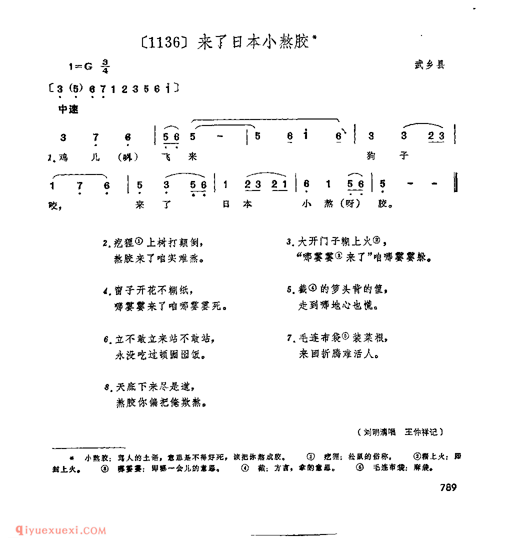 来了日本小熬胶&武乡县_小调类_山西民间歌曲简谱