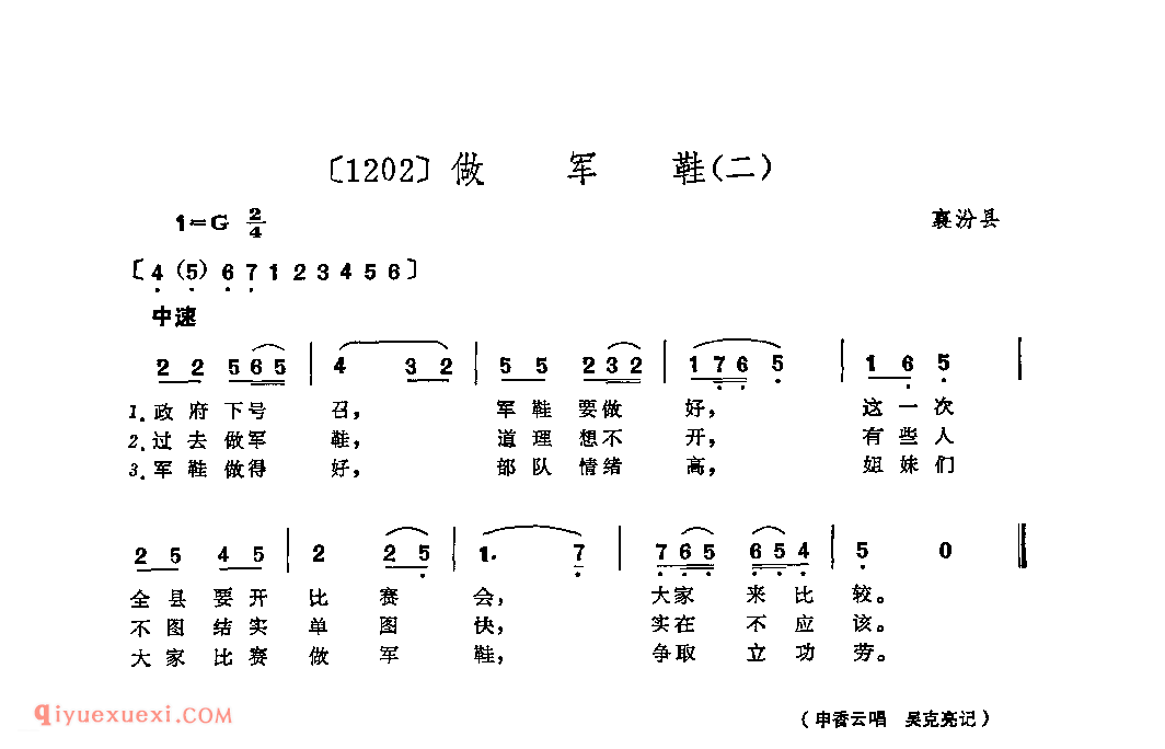 做军鞋(二)&襄汾县_小调类_山西民间歌曲简谱高清简谱歌词是器乐学习网于2022年09月19日 11:45:27更新分享的民歌曲谱;资源收录于民歌曲谱栏目中;器乐学习网免费分享做军鞋(二)&襄汾县_小调类_山西民间歌曲简谱简谱与五线谱歌谱图片,欢迎在线免费下载;器乐学习网无需注册会员,直接免费下载各类乐器学习资源及乐谱。