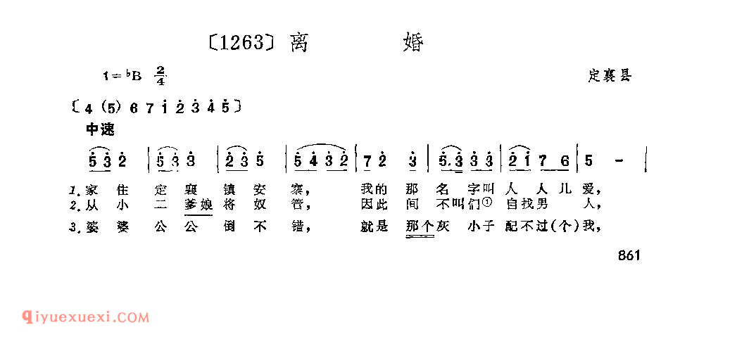 离婚&定襄县_小调类_山西民间歌曲简谱