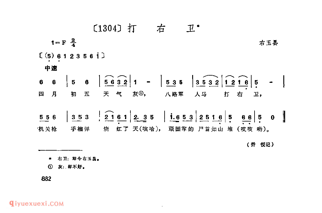 打右卫&右玉县_小调类_山西民间歌曲简谱