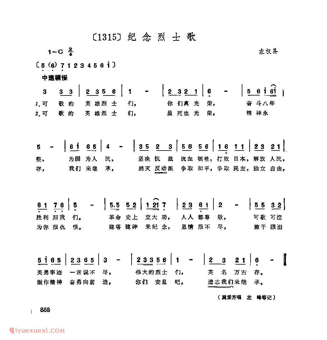 纪念烈土歌&左权县_小调类_山西民间歌曲简谱