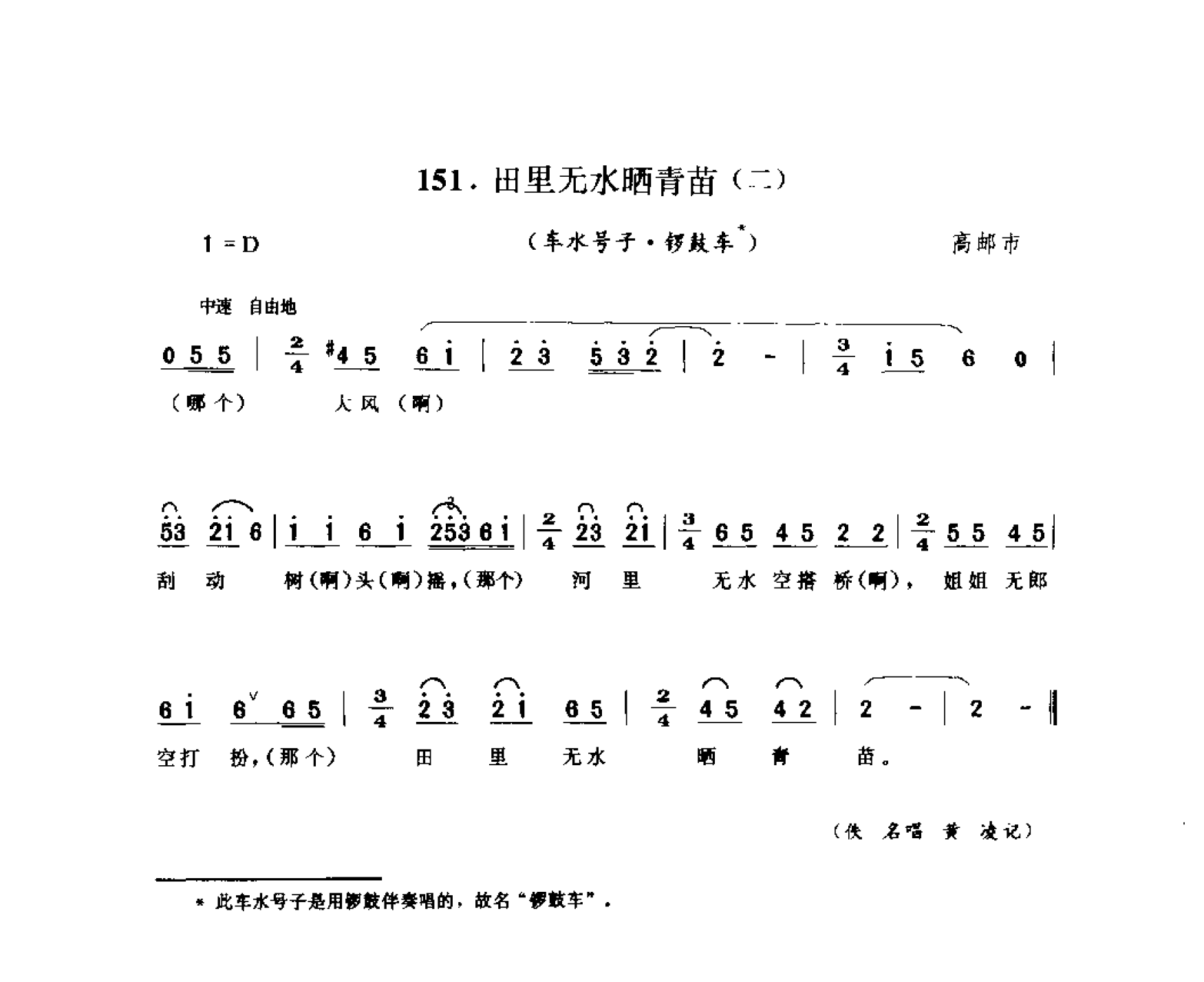 田里无水晒青苗(二)(车水号子·锣鼓车) 高邮市高清简谱歌词是器乐学习网于2024年12月20日 10:23:54更新分享的民歌曲谱;资源收录于民歌曲谱栏目中;器乐学习网免费分享田里无水晒青苗(二)(车水号子·锣鼓车) 高邮市简谱与五线谱歌谱图片,欢迎在线免费下载;器乐学习网无需注册会员,直接免费下载各类乐器学习资源及乐谱。