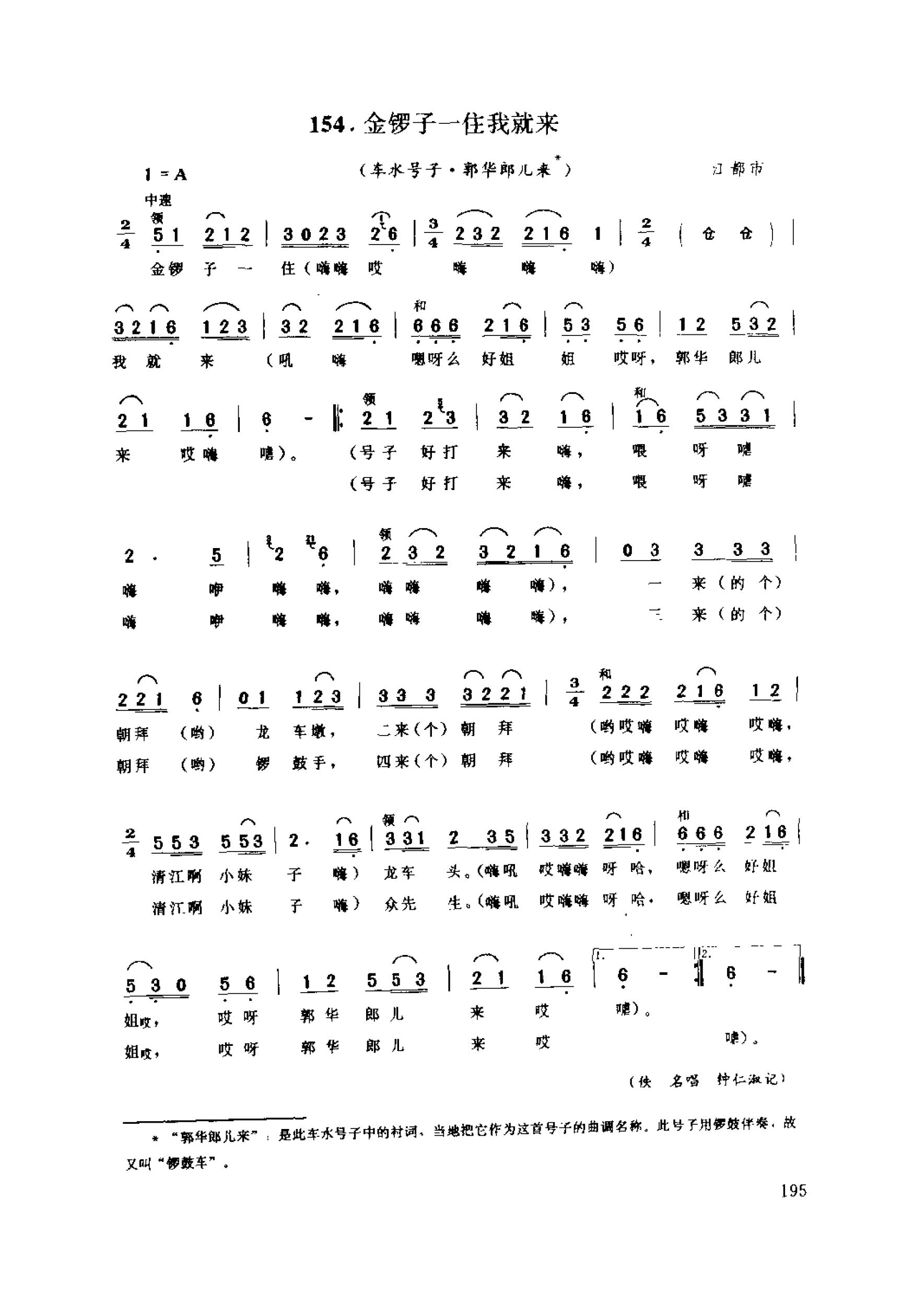 “郭华郎儿来”:是此车水号子中的衬词、当地把它作为这首号子的曲调名称。此号子用锣妓伴奏,故又叫“锣鼓车”