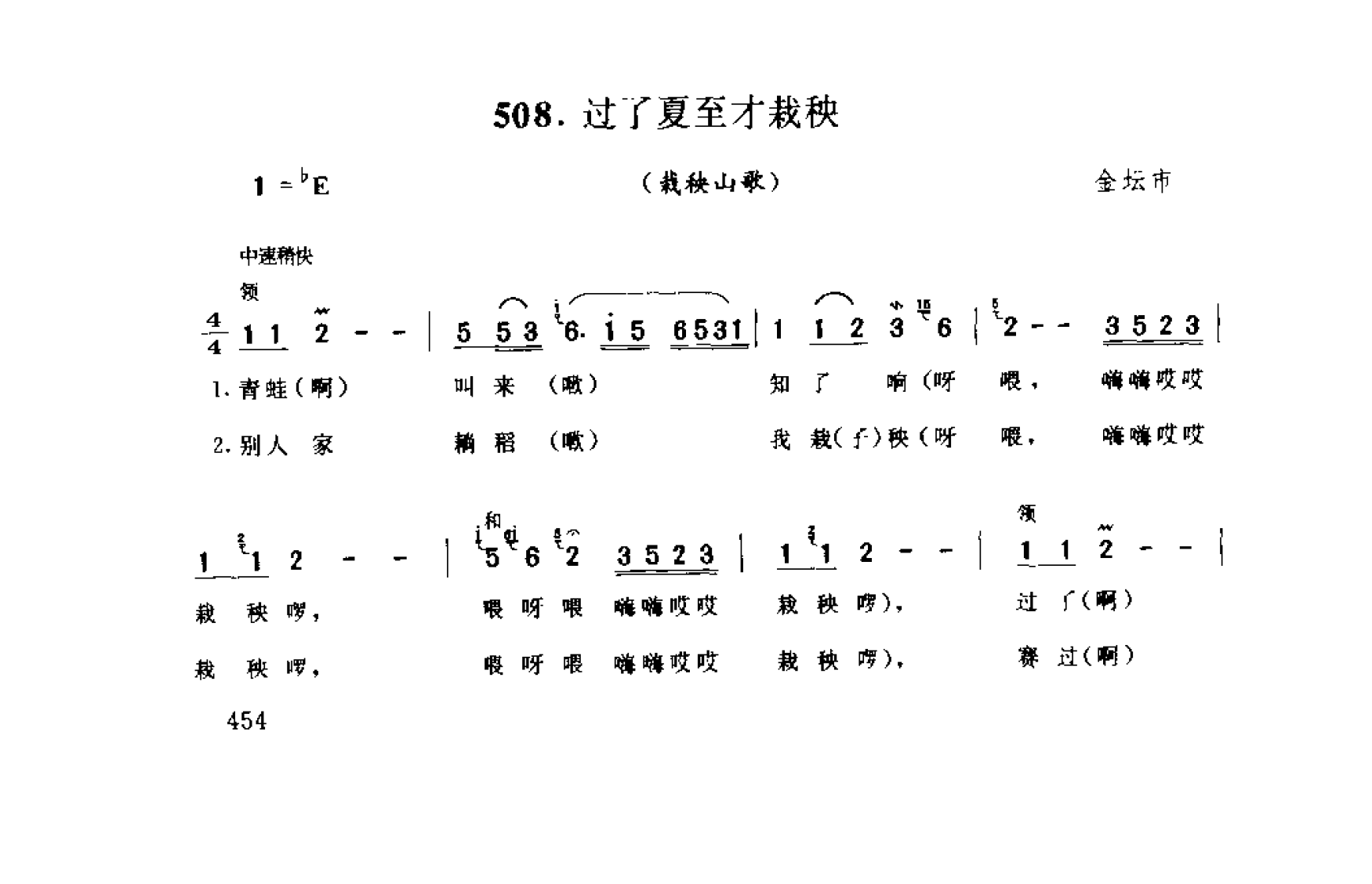 山歌:过了夏至才栽秧(栽秧山歌) 金坛市