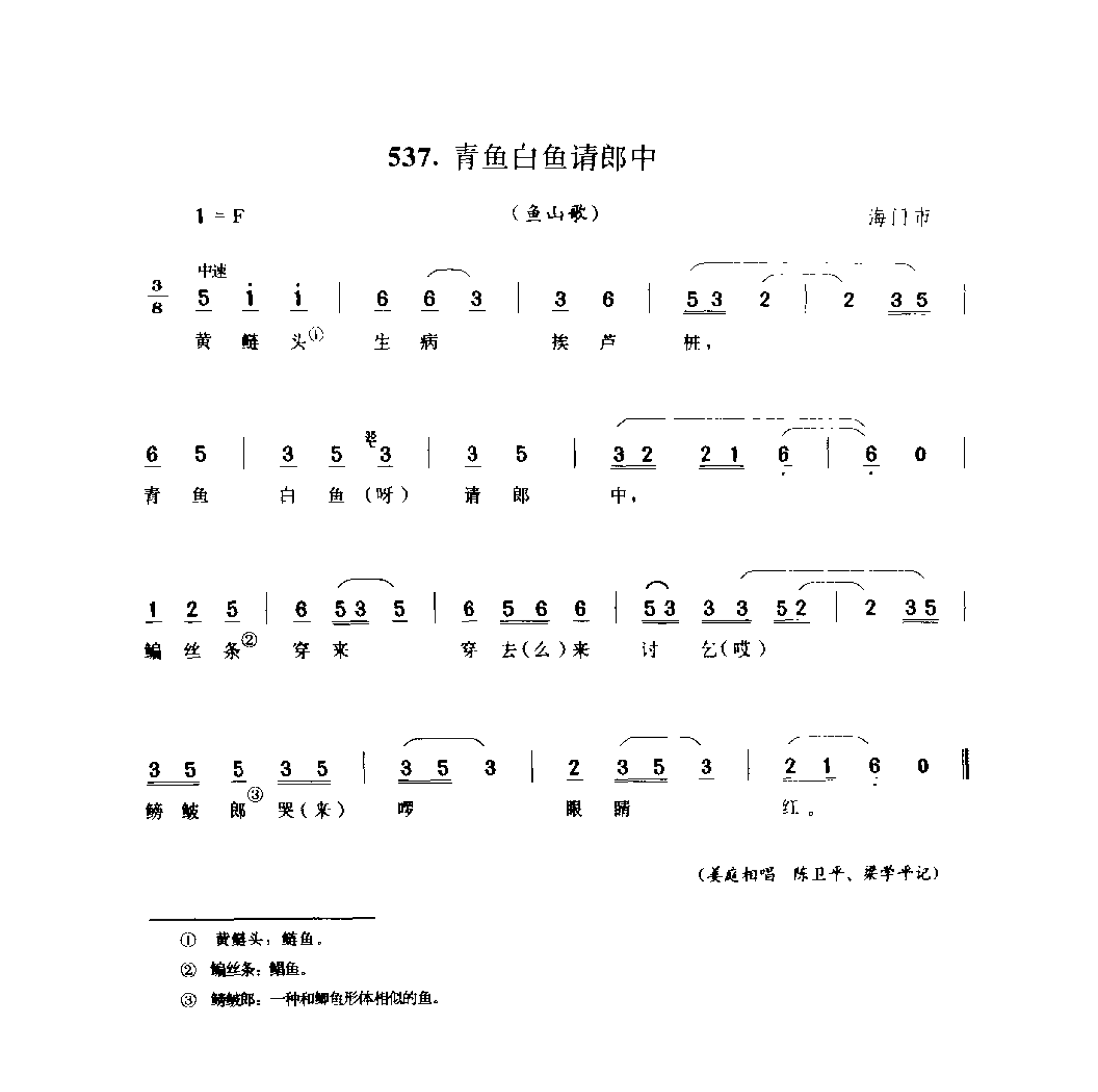 山歌:青鱼白鱼请郎中(鱼山歌) 海门市
