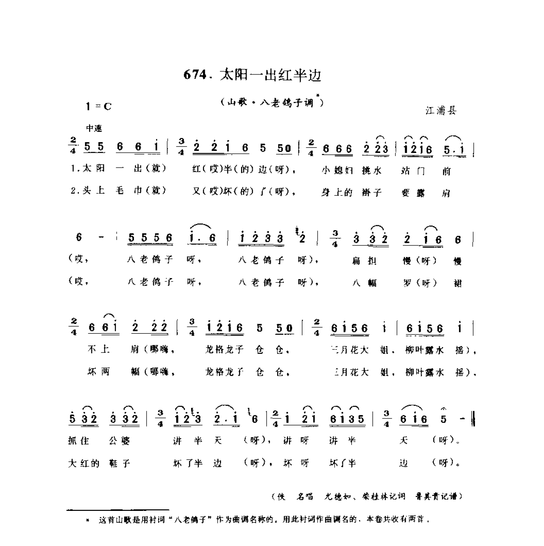 山歌:太阳一出红半边(山歌·八老鸽子调) 江浦县
