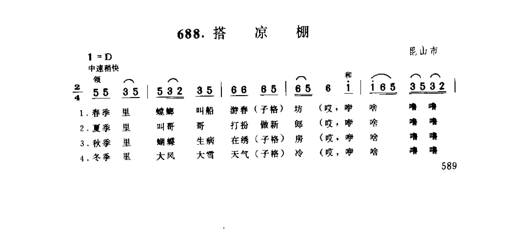 观花(秧歌·小场子) 1979年 佳县_陕北秧歌_陕西民歌简谱...