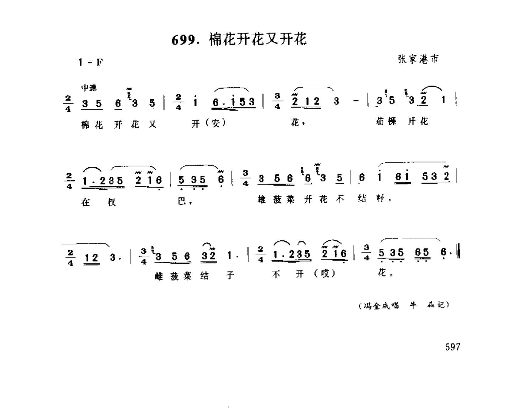 观花(秧歌·小场子) 1979年 佳县_陕北秧歌_陕西民歌简谱...
