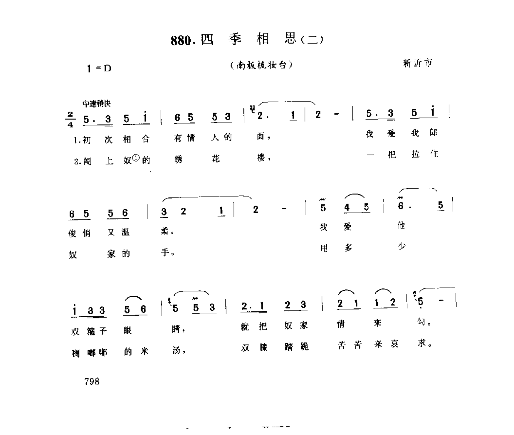 四季相思(二)(南板梳妆台) 新沂市高清简谱歌词是器乐学习网于2024年12月24日 11:13:49更新分享的民歌曲谱;资源收录于民歌曲谱栏目中;器乐学习网免费分享四季相思(二)(南板梳妆台) 新沂市简谱与五线谱歌谱图片,欢迎在线免费下载;器乐学习网无需注册会员,直接免费下载各类乐器学习资源及乐谱。