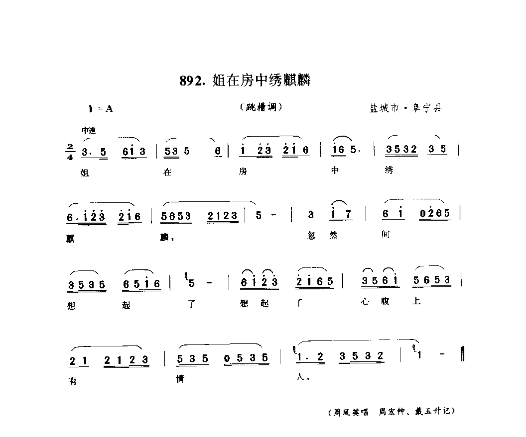 姐在房中绣麒麟(跳槽调) 盐城市·阜宁县