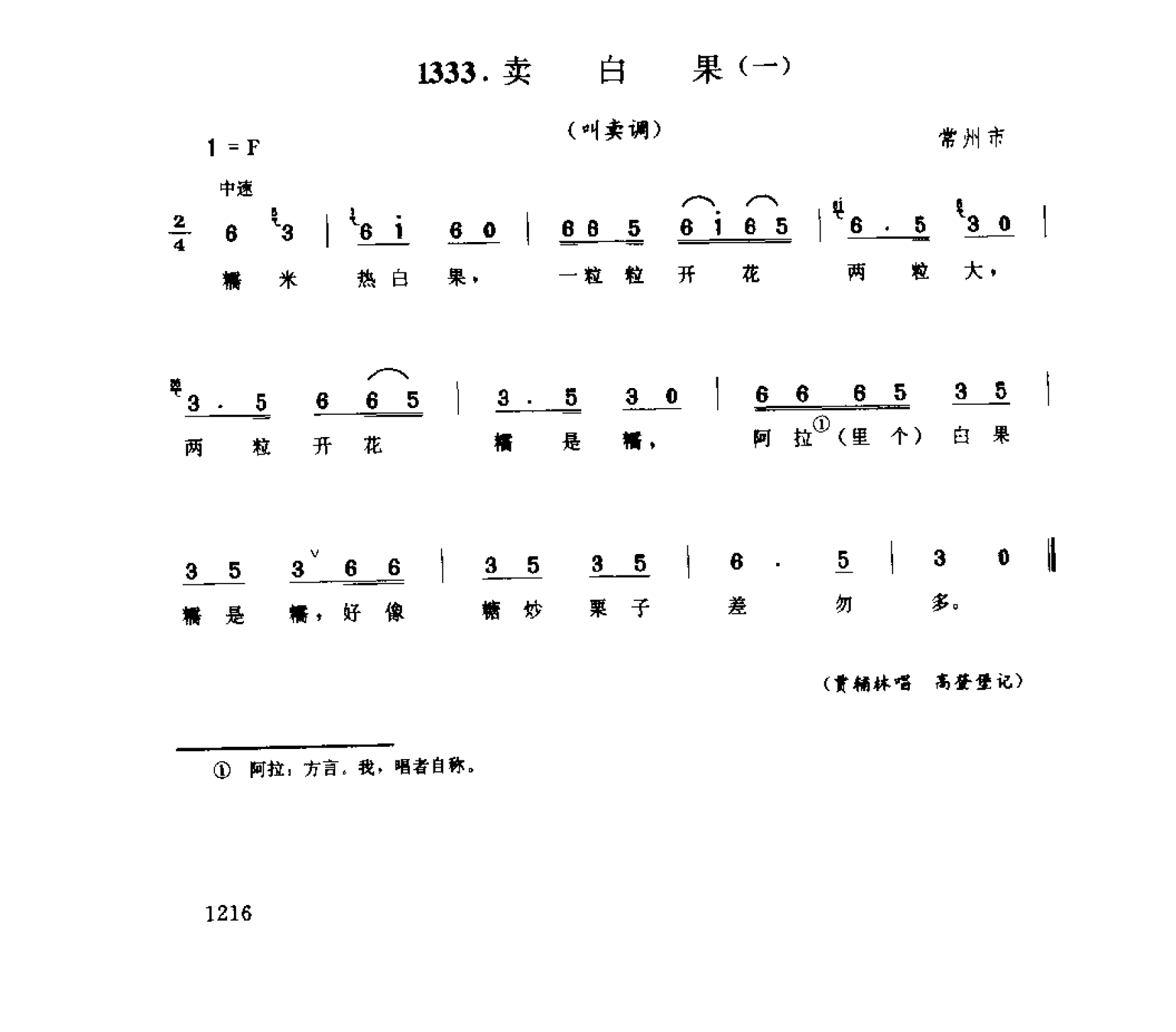 生活音调:卖白果(一)(叫卖调) 常州市高清简谱歌词是器乐学习网于2024年12月26日 11:17:29更新分享的民歌曲谱;资源收录于民歌曲谱栏目中;器乐学习网免费分享生活音调:卖白果(一)(叫卖调) 常州市简谱与五线谱歌谱图片,欢迎在线免费下载;器乐学习网无需注册会员,直接免费下载各类乐器学习资源及乐谱。