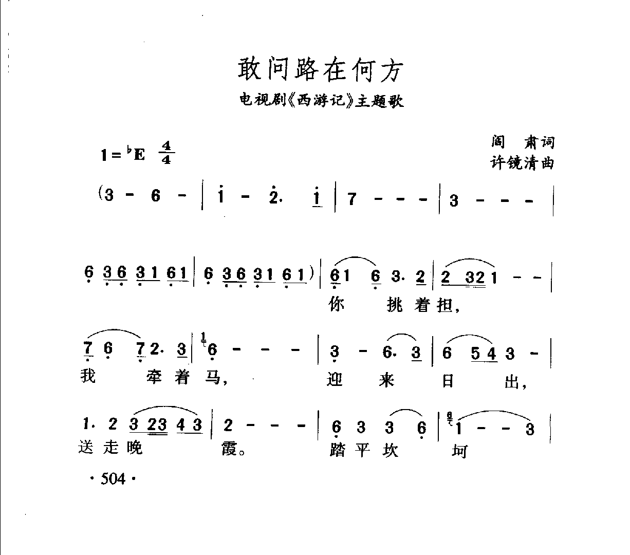 敢问路在何方(电视剧《西游记》主题歌)肃词 许镜清曲