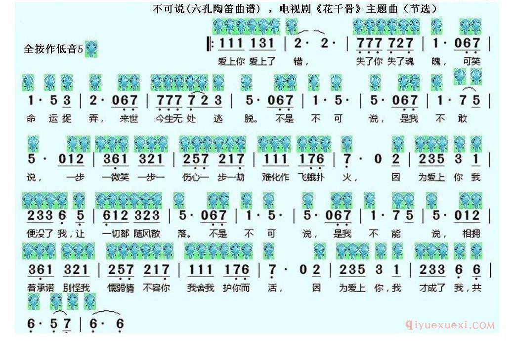 6孔陶笛乐谱《不可说》高清电子版乐谱歌词图片是器乐学习网于2020年06月23日 18:08:06更新分享的陶笛曲谱;资源收录于陶笛曲谱栏目中;器乐学习网免费分享6孔陶笛乐谱《不可说》简谱与五线谱歌谱图片,欢迎在线免费下载;器乐学习网无需注册会员,直接免费下载各类乐器学习资源及乐谱。