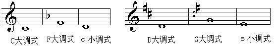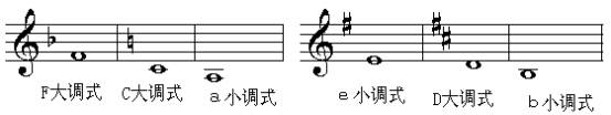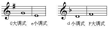 2、转向属方向的大小调。如F大调式转到C大调式或a小调式;e小调式转到D大调式或d小调式。